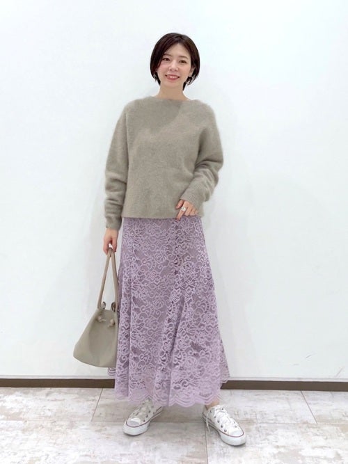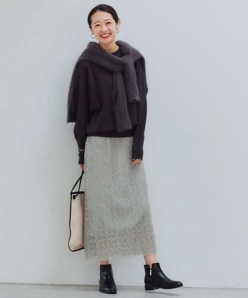 レースの透け感とモヘアニットのふわふわ感が、コーデを立体的に見せてくれます。