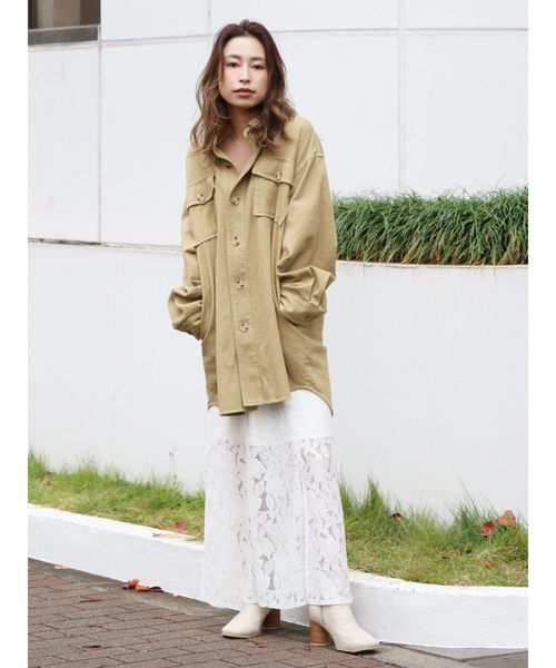 レーススカートにミリタリージャケットを合わせた甘辛MIXスタイル!