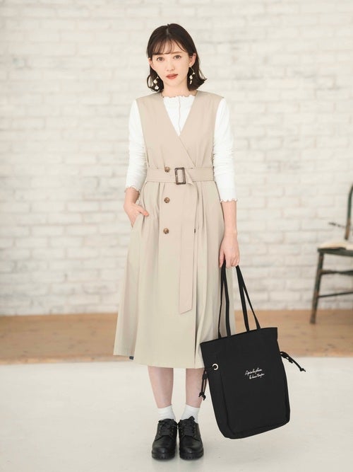 しまむらのトレンチコートはワンピース風に着ることもできます。