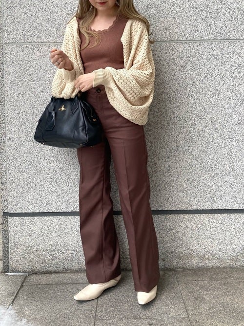 深みのあるブラウンが大人っぽいユニクロのワイドパンツ。