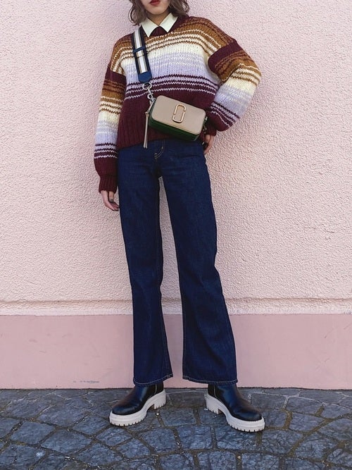 シンプルなボトムと合わせるだけでも、いつものニットコーデとはちょっと違った雰囲気を楽しめるのでおすすめです。