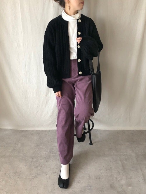 カラーパンツの中でも落ち着きがあって大人女性が着こなしやすいパープルのパンツをGUでプチプラゲット。