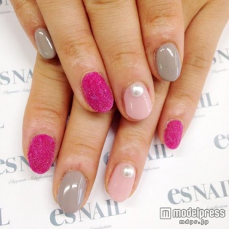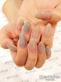 秋冬らしくグレージュや明るめグレーのシンプルな単色ネイルに、ポイントとしてベルベットをプラス。温かい雰囲気を醸しだしてくれます。