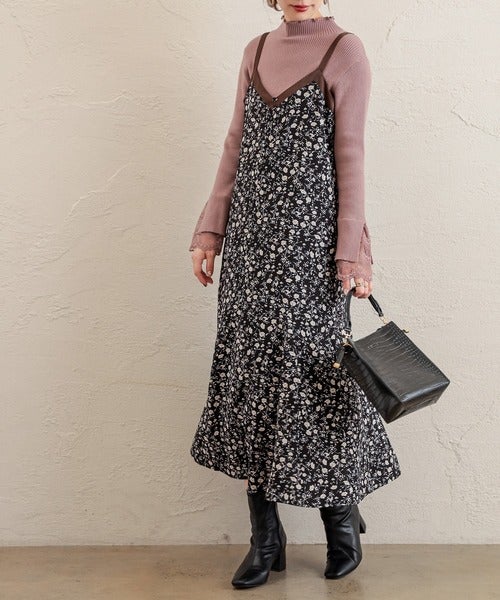ヴィンテージ感漂う配色花柄キャミワンピース。