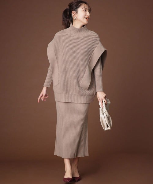 オーバーサイズのハイネックベストがセットになっているから、体型カバーまで叶う優秀ワンピース。