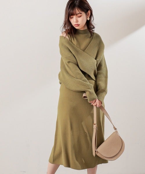 コーデに迷う必要がないクロスニット+ノースリワンピースのセットアイテム。