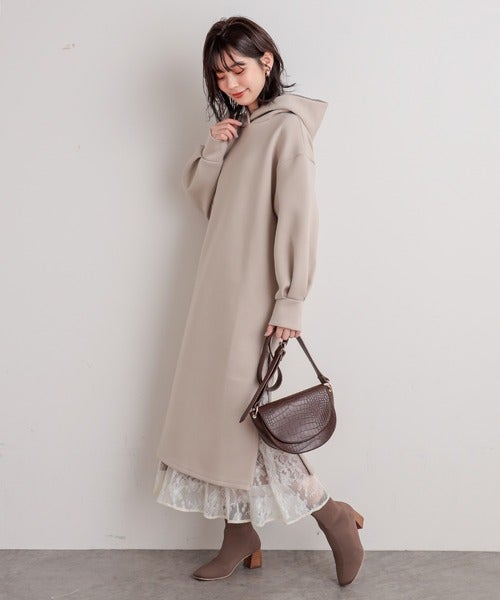 カジュアルな分部屋着っぽく見えやすいパーカーワンピース。