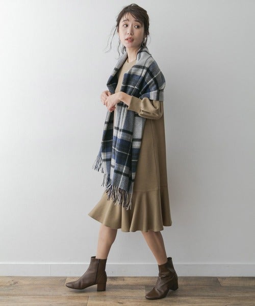 チェック柄ストールを肩から羽織って大人っぽさもプラス。
