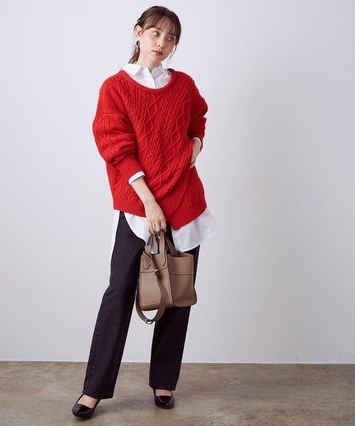 真っ赤なニットを使えば着映え力満点の冬コーデが完成します。