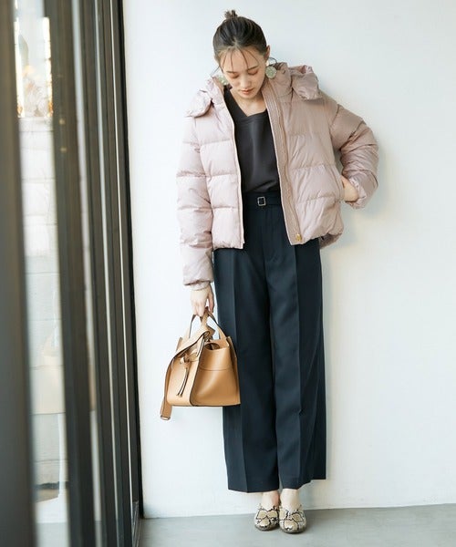 フーデッドダウンブルゾンというとカジュアル感が強いイメージ。