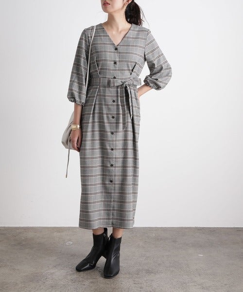 グレンチェックのワンピースなら簡単なのにきちんとして見えるからおすすめです。