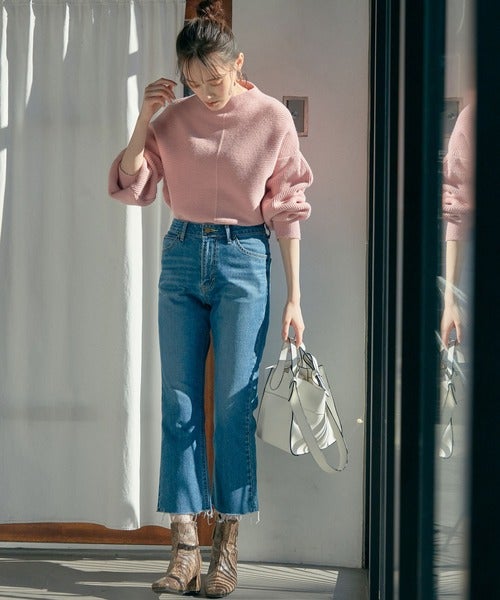 ピンクニットを使って、いつものデニムコーデでも季節を先取り。