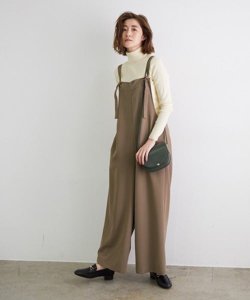 ベージュやブラウンなど落ち着いた色ならオールインワン特有の幼さも気になりません。