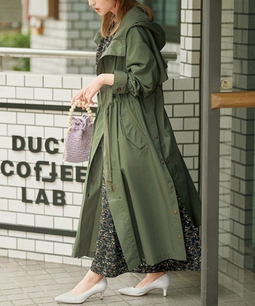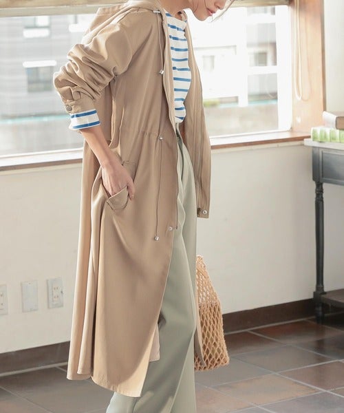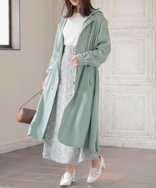 ロング丈のマウンテンパーカーなら明るい色でも子供っぽく見えません。