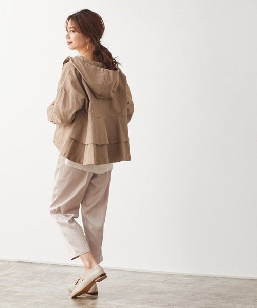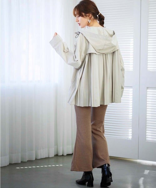 カジュアルなマウンテンパーカーコーデですが、バックフレアデザインならレディライクな着こなしを作れます。