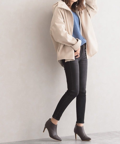 まだまだアウターを手放せない季節はスキニーのブラックデニムが活躍します。