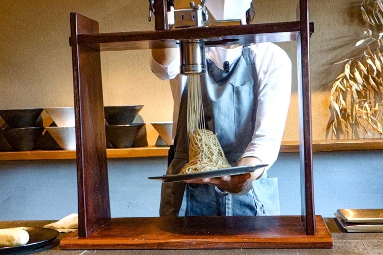 ▲お客さまの目の前で和栗のペーストを絞って提供する(写真は京都の「和栗専門店 紗織」)。