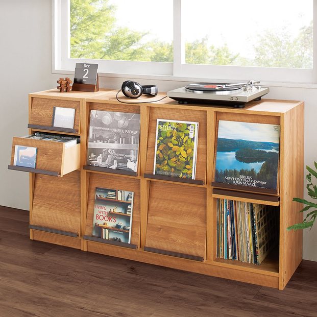 スライド式になっているので、二列分たっぷり収納することができるうえ、奥の棚に入れた本も簡単に取り出せます。連結金具を使えば、2つ合わせてさらに収納力をアップさせることもできます。