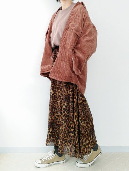インパクトあるレオパード柄スカートで、大人の遊び心をプラス!