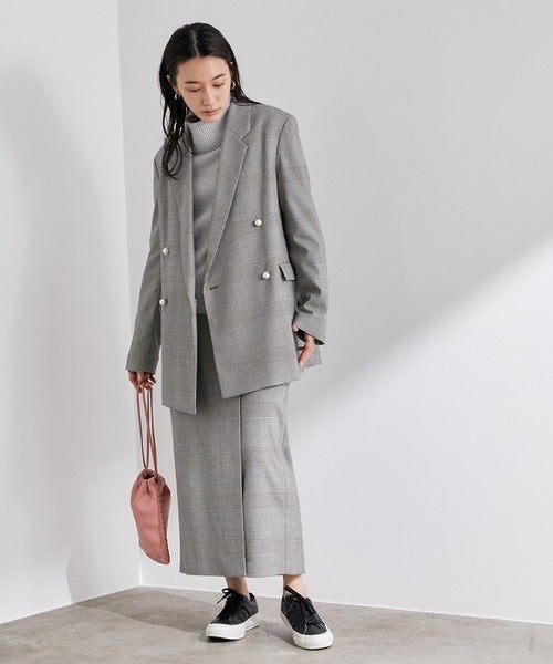 グレンチェック柄のセットアップでクラシックな雰囲気を作ったコーディネート。