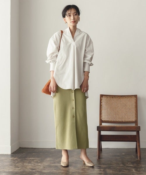 ニットスカートで程よくラフさを出すのもいいですね。
