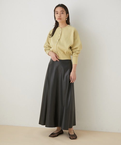 レザースカートでクールな印象に仕上げたシンプルコーデ。