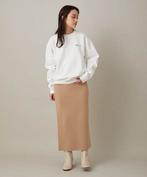 スカートが細身のシルエットだと、部屋着っぽさがなく大人な雰囲気がありますね。