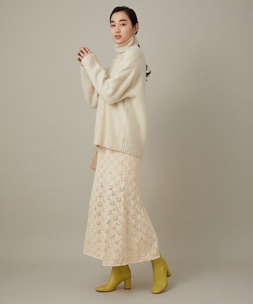 そんな時はレーススカートで華やげて見て。ニットレーススカートなら甘さ控えめです。