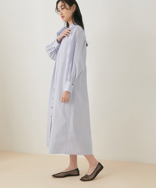 シンプルなデザインのシャツワンピースは、いろいろなスタイリングが楽しめます。
