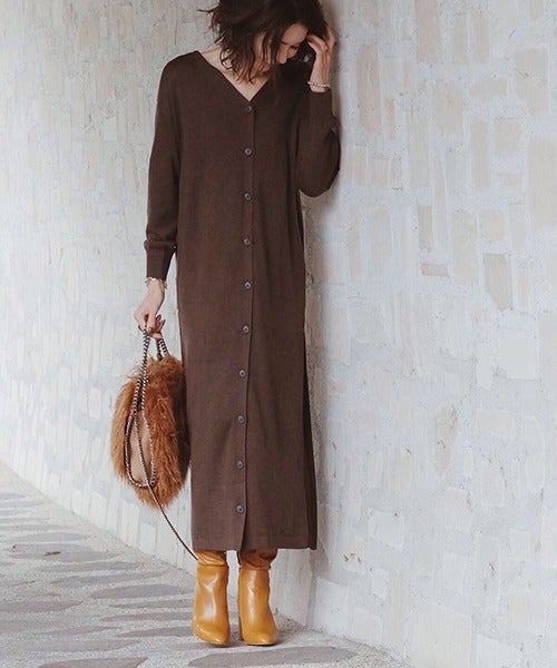 カーディガンとしても着ることのできるブラウンワンピース。