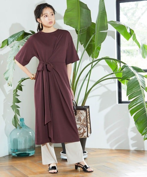 ウエストのねじりデザインが印象的なブラウンワンピース。