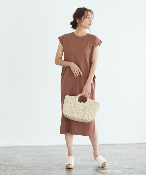 ブラウンワンピースの夏コーデ