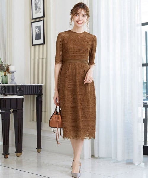 総レースのブラウンワンピースは、きれいめスタイルもグッと大人っぽく仕上がります。