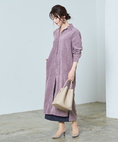 カジュアルな雰囲気のコーデュロイ素材ですが、シャツワンピースなら大人っぽくきれいめな着こなしを叶えてくれます。