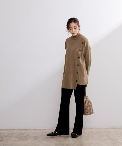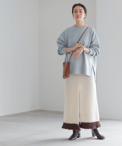 スカートのセンターに深めのスリットが入っていて、こなれポイントになっているので大人っぽく決まっていますね。