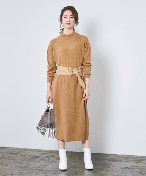 シンプルなワンピースなら、ウエストにベルトを巻いてスタイルアップも叶えましょう。