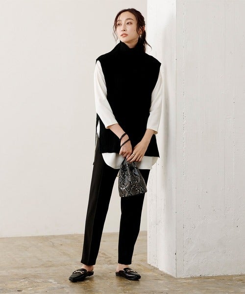ニットベストを重ねることで、トレンド感を出しています。