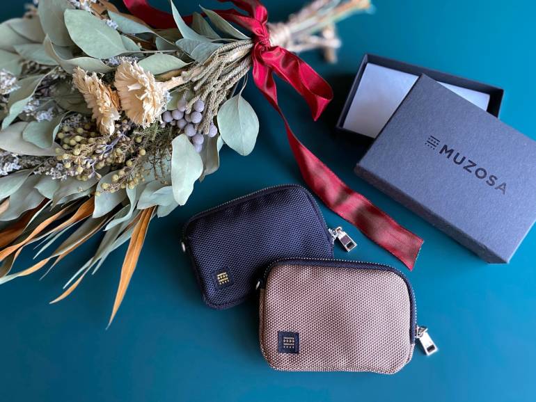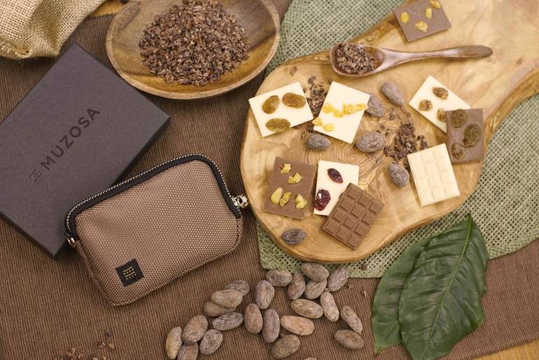 ポケットで邪魔にならない名刺入れサイズのMUZOSAは、鍵、カード、コイン、紙幣ケースとして使える機能を備え、そのなかに超極小のエコバッグMUZOSA & NYLON ULTRALIGHT BAGが付属されている。 チョコレートは、MUZOSAオリジナルサイズのミニタブレットで、カカオニブを使用し、食材を余すことなく使い切りフードロス削減にも取り組んでいる。