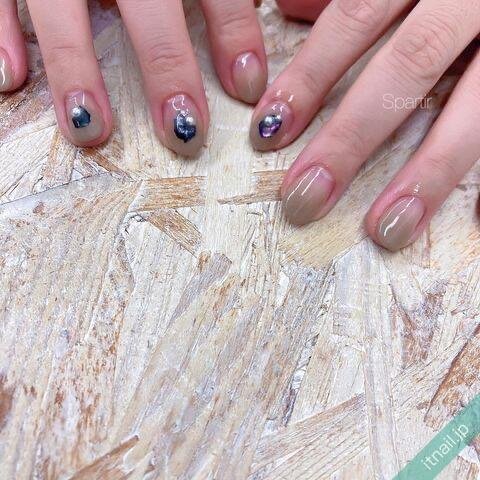 ピンクベージュのワンカラーネイルに、シンプルに飾ったパール&スタッズ。さりげなくモードな印象を感じさせるオシャレ度の高い仕上がりです。ポイントは左右で大きさや配置をアシンメトリーにしているところ。清楚なパールはアレンジで映えます。
