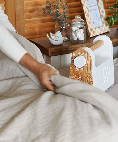 ほかほかの気持ちいい布団にしてくれる温風は、ダニ対策にも効果的。衣類や、靴の乾燥にも使えるから1年中マルチに活躍してくれます。シンプルでナチュラルなデザインも好感が持てますよね。