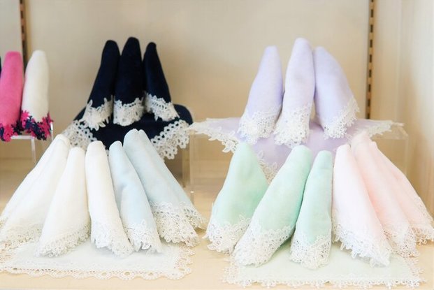 横浜元町にある創業120年のレース専門店「近沢レース店」ではキュートなレースをあしらったタオルハンカチが人気です。品のいいクラシカルなタイプや横浜限定のモチーフに加えて、季節をイメージしたカラフルでかわいいレースも月替りで登場します。大切な方へのギフトにされてはいかがでしょうか。