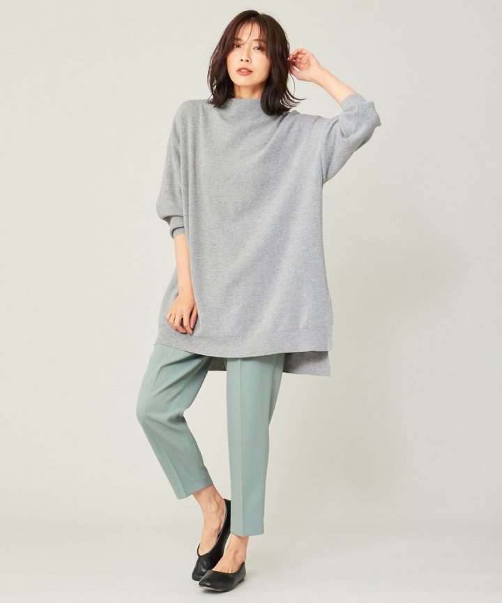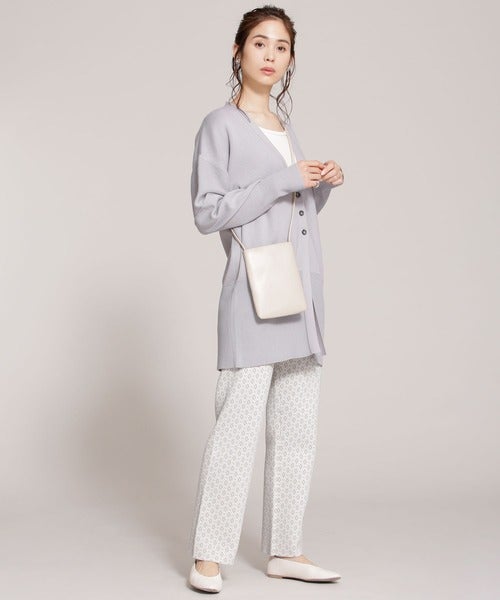 リラクシーな雰囲気で着られるニットパンツは、カーディガンでゆったりとスタイリング。