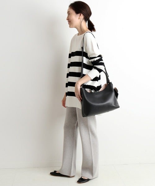 ニットパンツ×ボーダー柄トップス