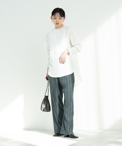 プリーツパンツ×シャツワンピース