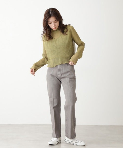 デニムパンツ×ショート丈プルオーバー