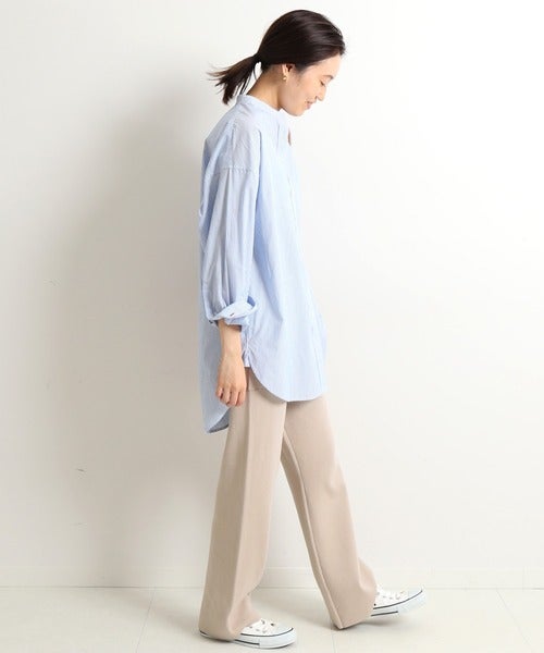 品良く着られるシャツは、リラクシーなニットパンツとの合わせでも大人っぽさをしっかりとキープしてくれます。