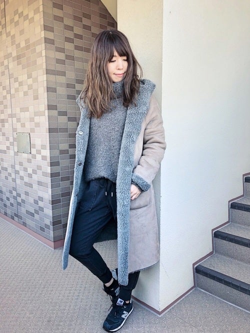 冬のレディースファッションに欠かせないムートンコートも、淡いグレーを選ぶと甘さを抑えた大人顔の着こなしが叶います。