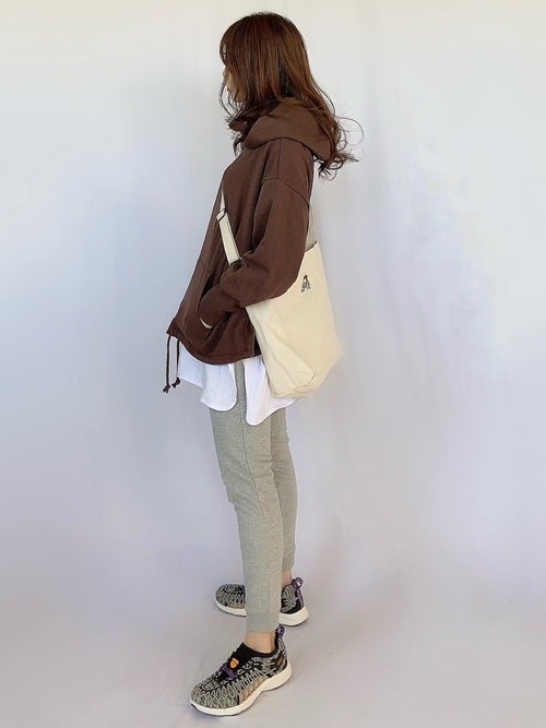 アウターいらずの温かい冬の日は、パーカー×スウェットパンツのカジュアルファッションがおすすめです。