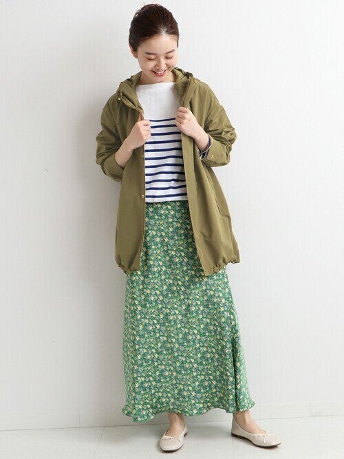 スカートを合わせるなら、すっきりとしたシルエットをチョイスするのが◎。