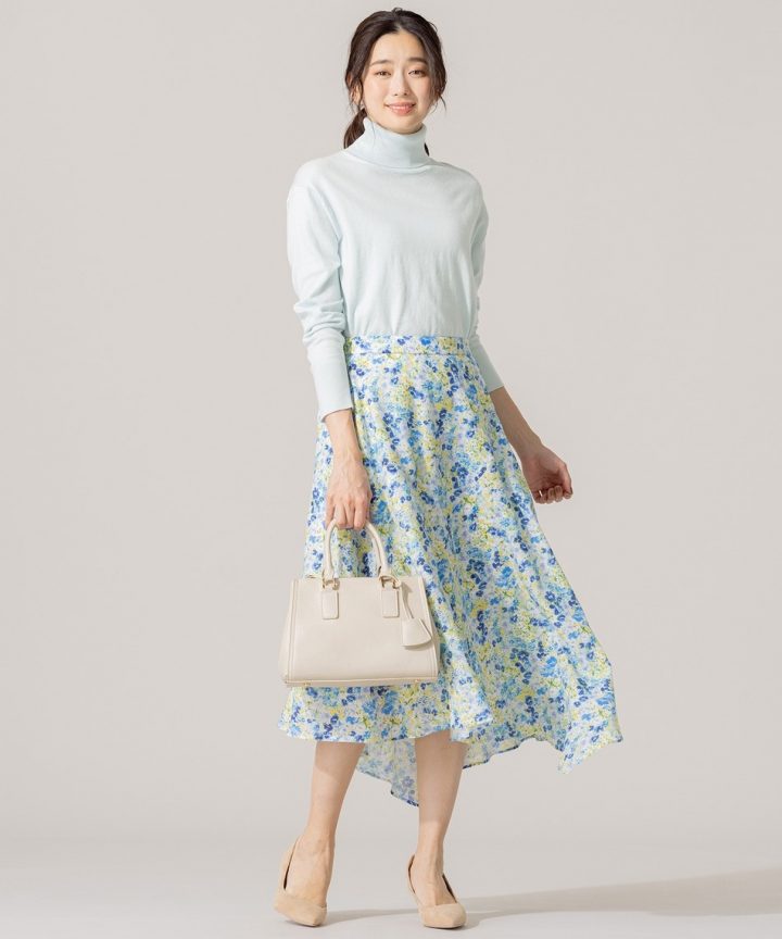 上品シルエットの花柄スカート